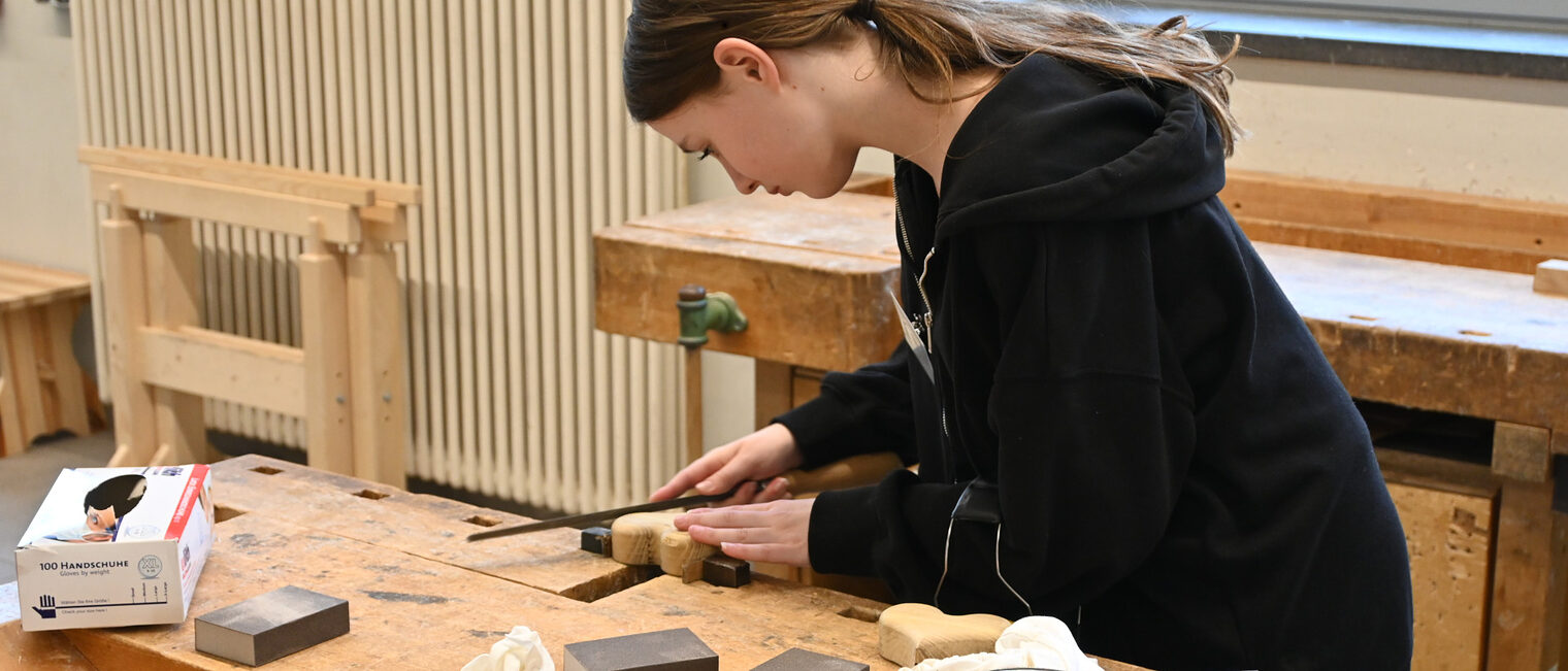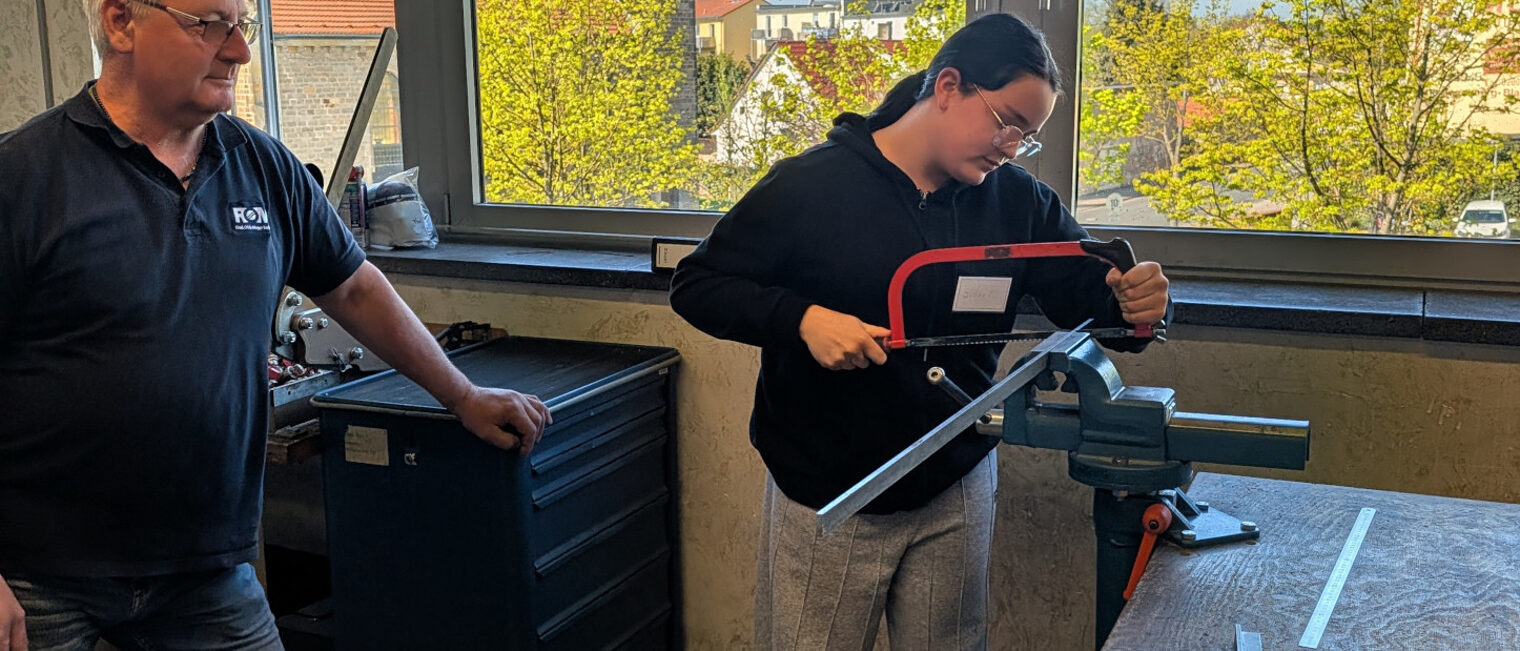 Nach einer Einführungsrunde ging es in die Lehrwerkstätten, in denen die Mädchen unter Anleitung von Lehrausbildern und Auszubildenden ihr handwerkliches Geschick ausprobierten. In der Tischlerwerkstatt haben sie ein Holzherz mit Ständer bearbeitet und bei den Malern gemeinsam mit den Azubis des 1. Lehrjahres gemalt. In der SHK-Werkstatt haben die Schülerinnen Metall mit der Säge und Feile zu bearbeitet und im Elektrobereich haben sie einen Einblick erhalten, wie elektrotechnisches Arbeiten funktioniert.